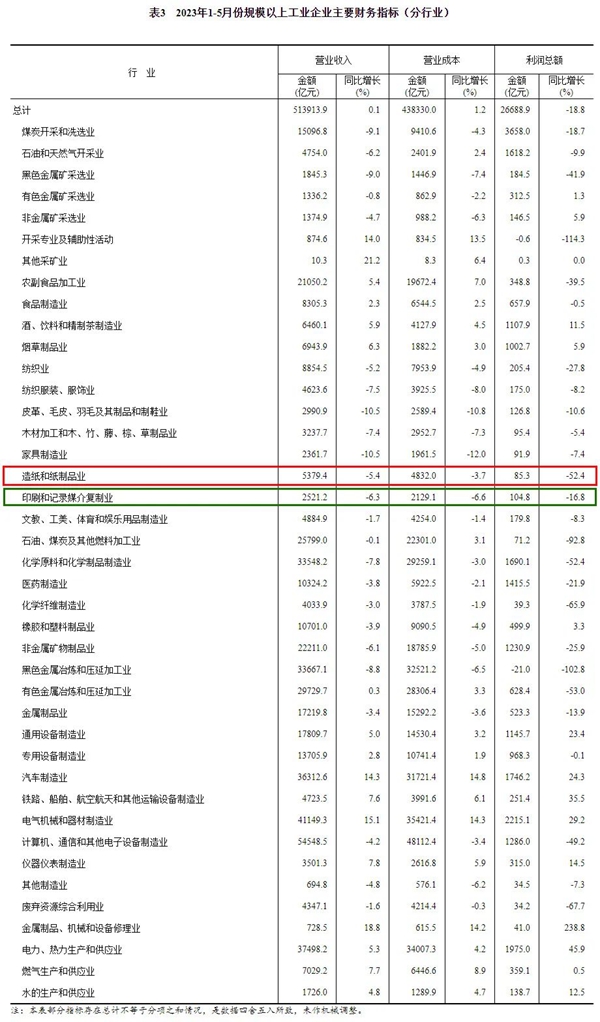 2023年(nian)1—5月份全(quán)國造紙(zhi)和紙制(zhì)品業利(lì)潤總額(é)同比