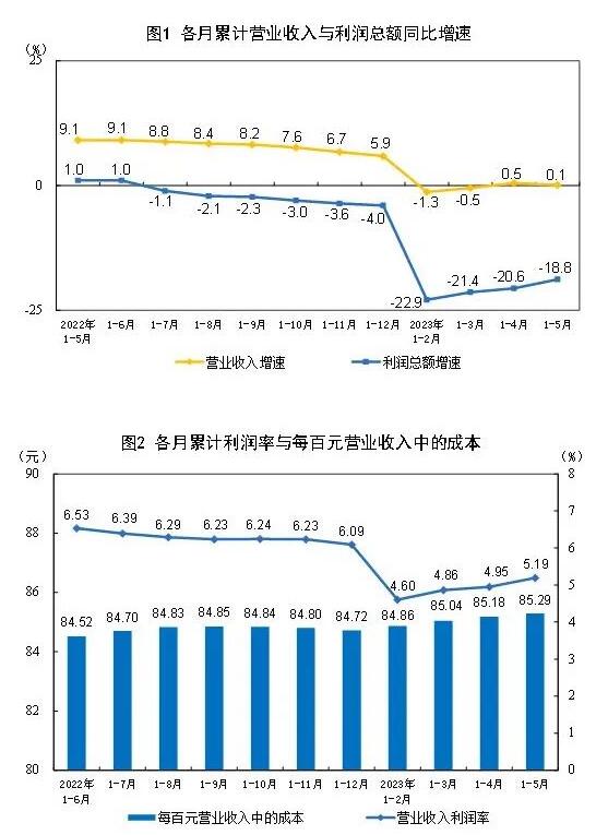 5月份(fèn),規模以(yǐ)上工業(yè)企業實(shi)現利潤(rùn)總額6358.1億(yì)元,同比(bǐ)下♌降12.6%。